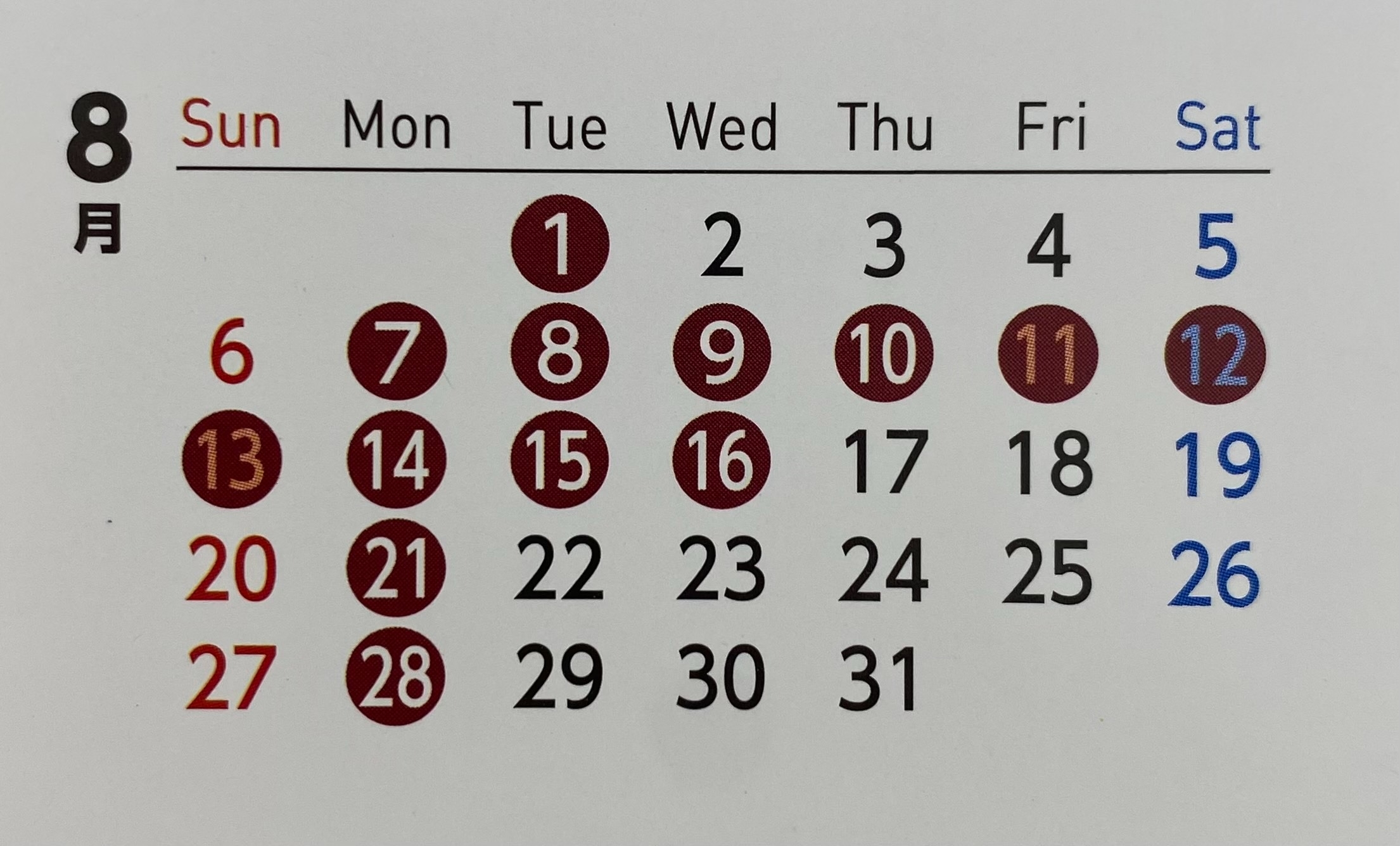 8月7日(月)~