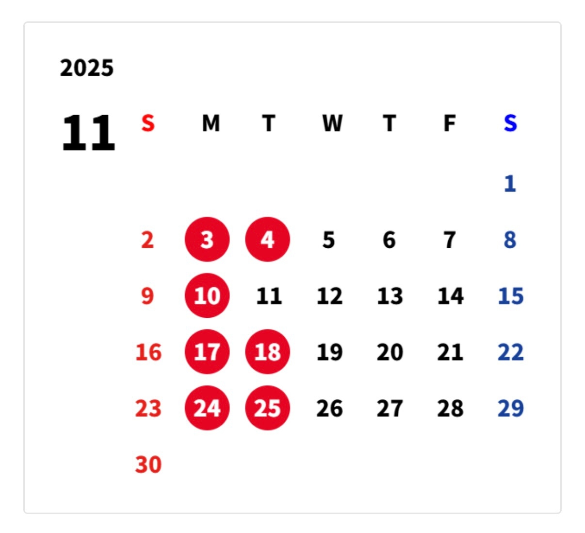 混み合う時期になりますので、早めのご予約をおすすめいたします
