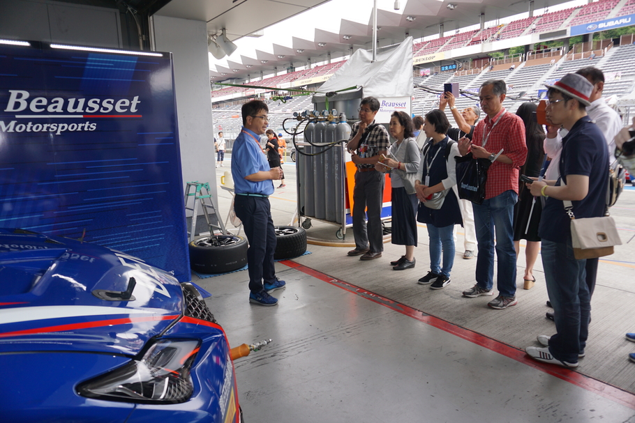 ツアーでは、ピットウォークやグリッドウォークにご参加いただく他、通常一般の方が立ち入ることの出来ないピット内に入り、レーシングチームから直接お話しを聞くこともできました。また、現役レーサー2名がお客様をアテンドし、レーサー目線でのレースの楽しみ方などをお話しました。