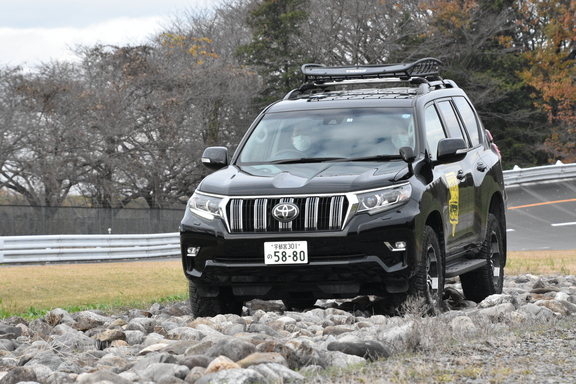 敷地内にあるオフロードコースを、ランドクルーザーとハイラックスに同乗し走破性を体感いただきました。