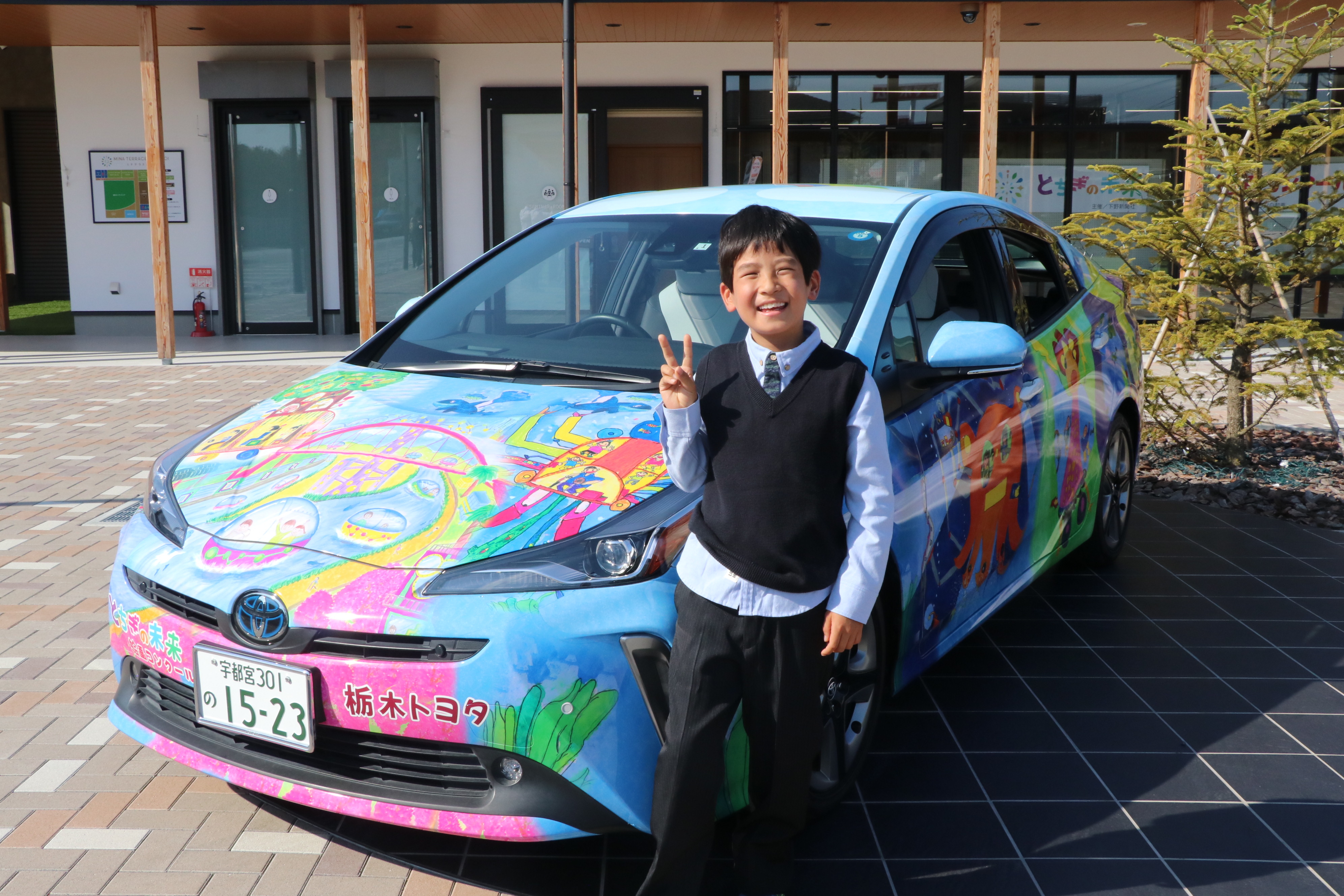 受賞作品9点をラッピングしたプリウスを制作いたしました。栃木トヨタの店舗やイベント等で展示をする予定です。