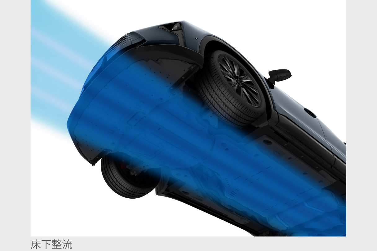 上質な走りを叶えるために、空力性能も追求したクラウン エステート。空力にも寄与するキャビンの造形や、床下流速を高めダウンフォースを発生させるエアロスタビライジングアンダーボディステップなど、接地性・直進安定性を向上させる数々の床下アイテムを設定しています。