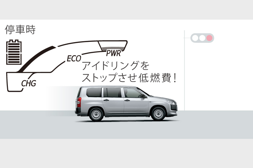 エンジンのアイドリングを自動的にストップさせ、燃費の向上に貢献。