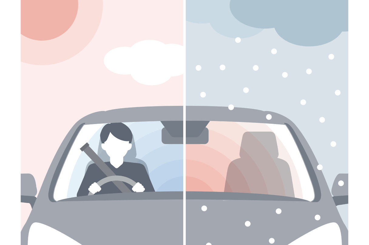 フロントドアのガラスは日焼けの原因となる紫外線(UV)を約99%カット*1。紫外線の強い季節や時間帯でも、気軽にドライブを楽しめます。また、日射しによるジリジリした暑さのもとである赤外線(IR)カット機能付です。