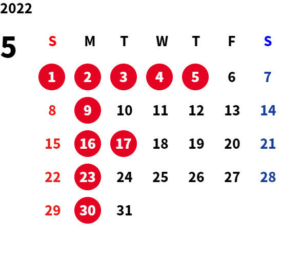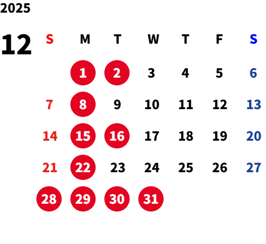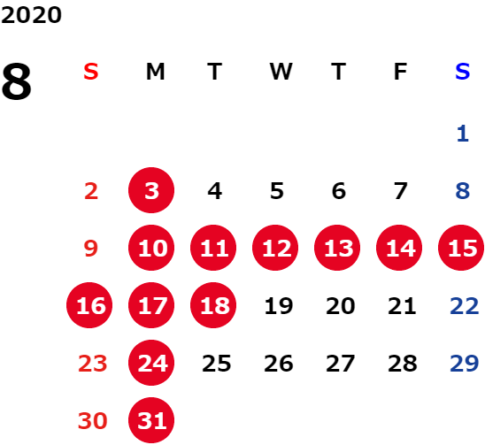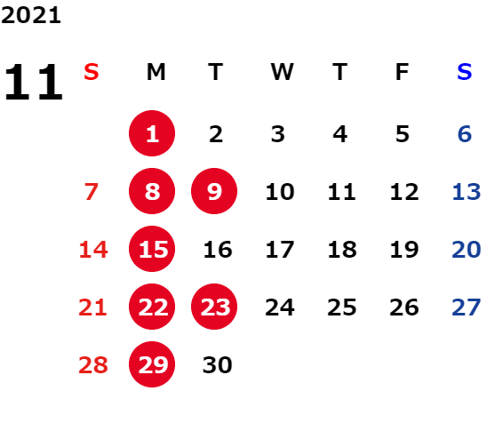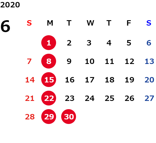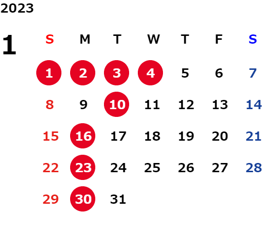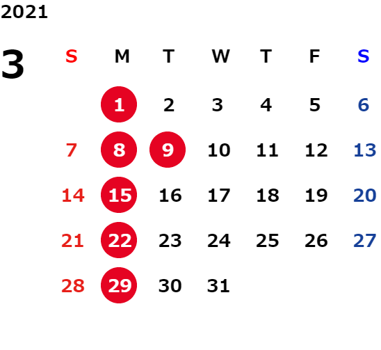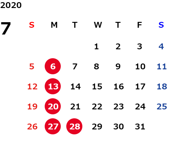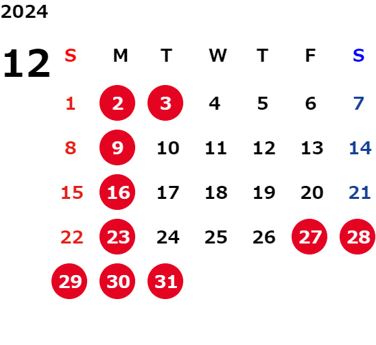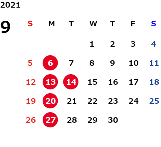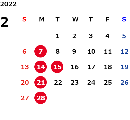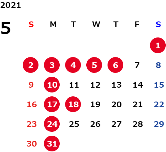 月曜日(一部火曜日) ※詳細は営業カレンダーをご参照ください。