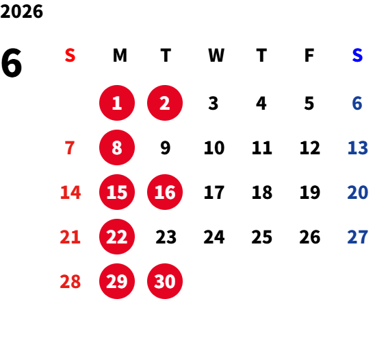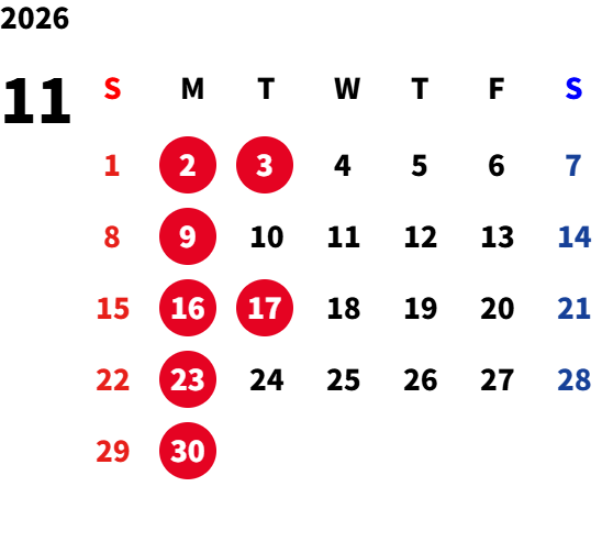 月曜日(一部火曜日) ※詳細は営業カレンダーをご参照ください。