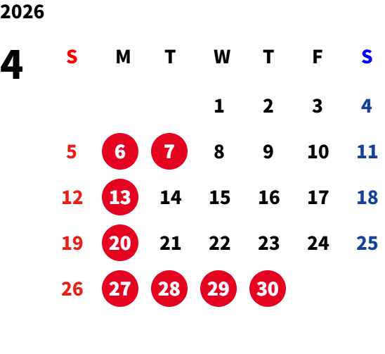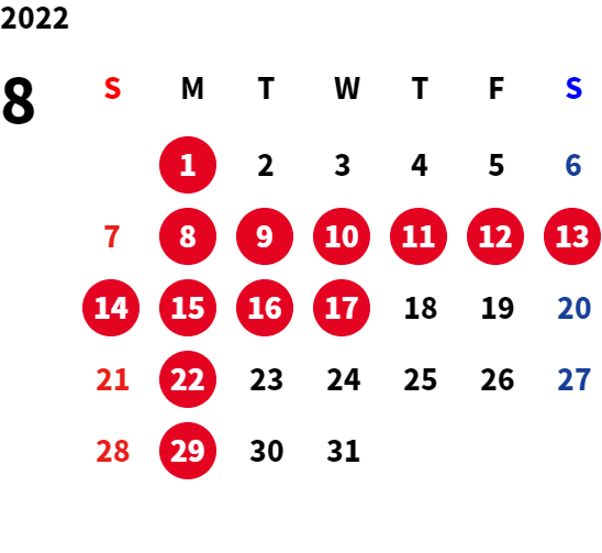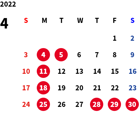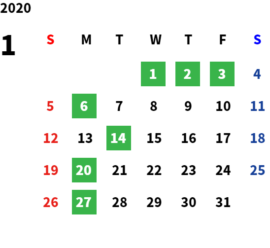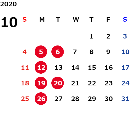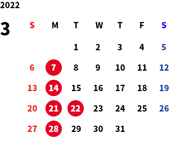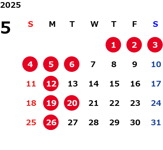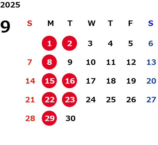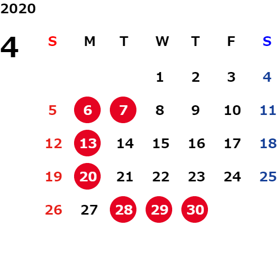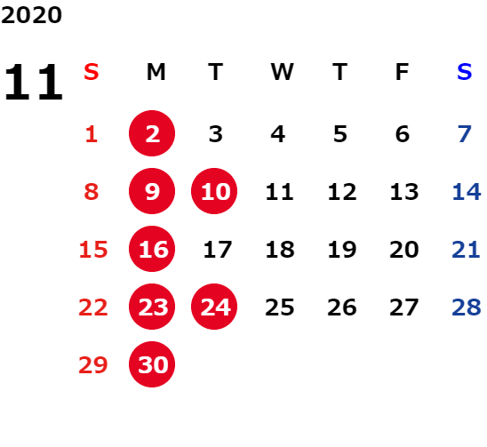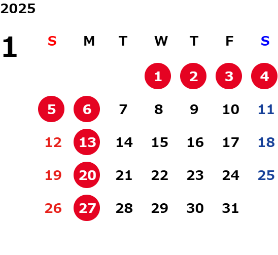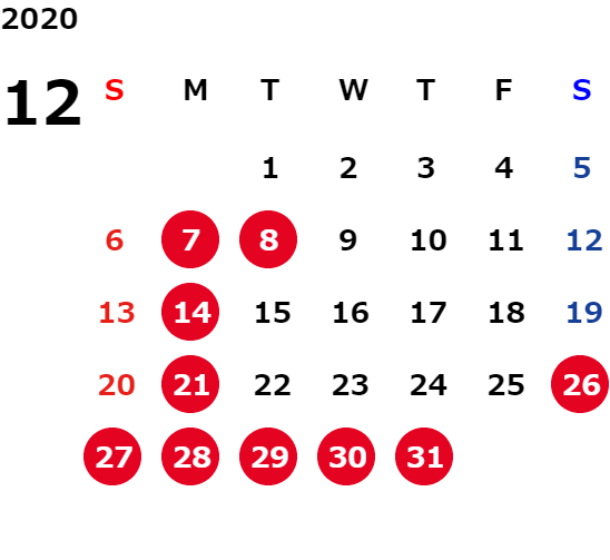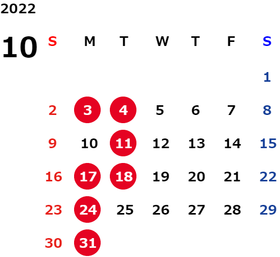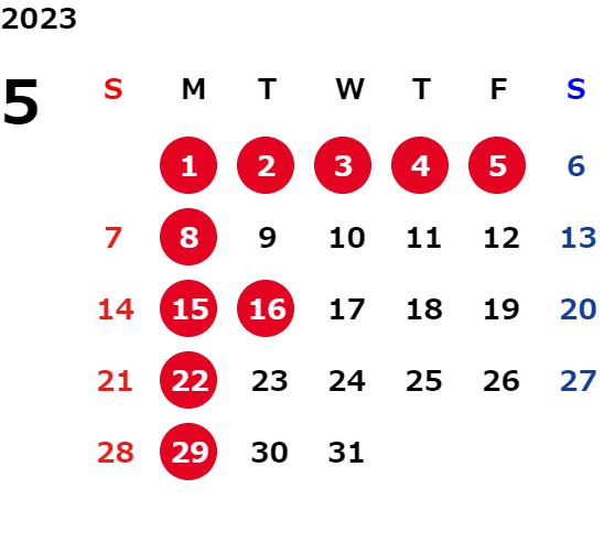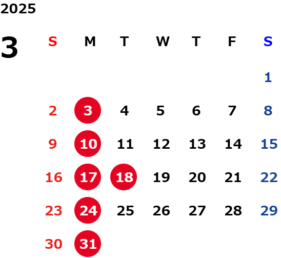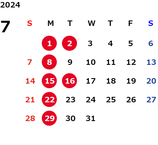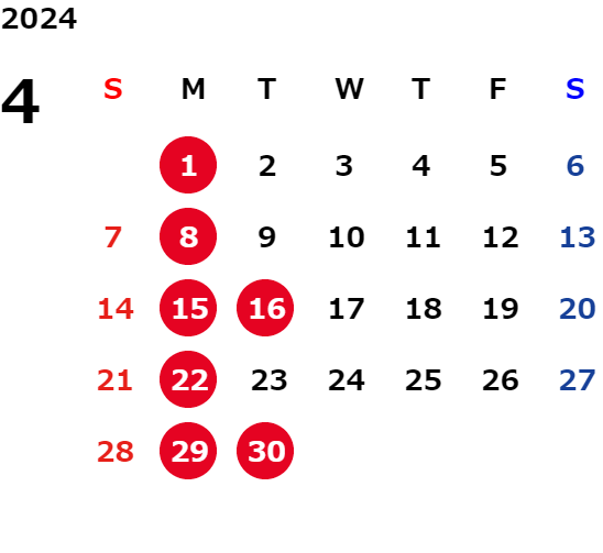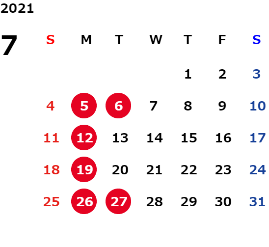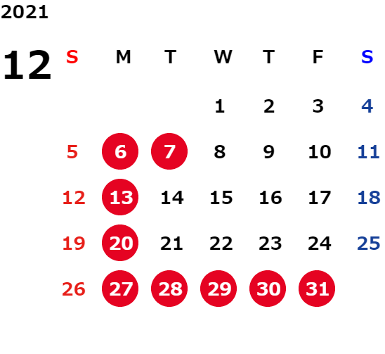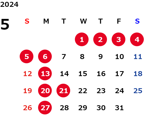月曜日(一部火曜日) ※詳細は営業カレンダーをご参照ください。