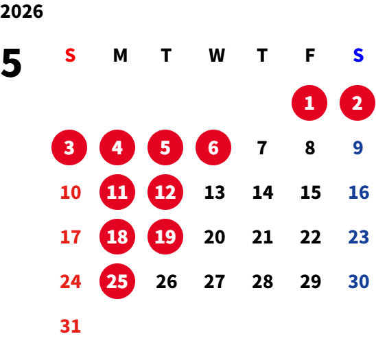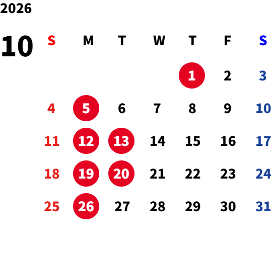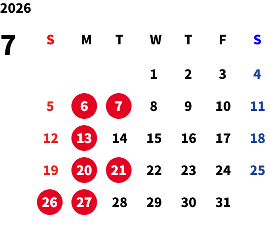 月曜日(一部火曜日) ※詳細は営業カレンダーをご参照ください。