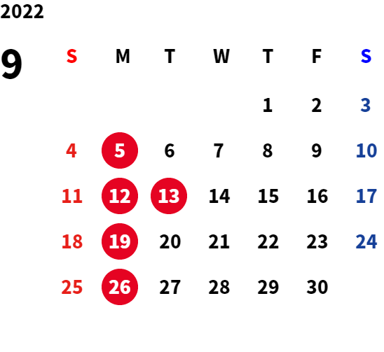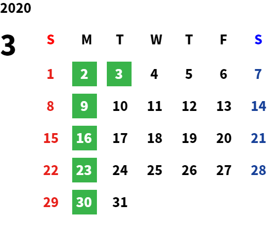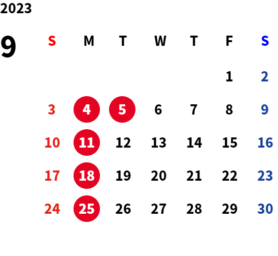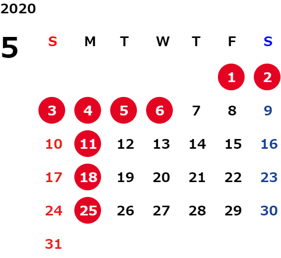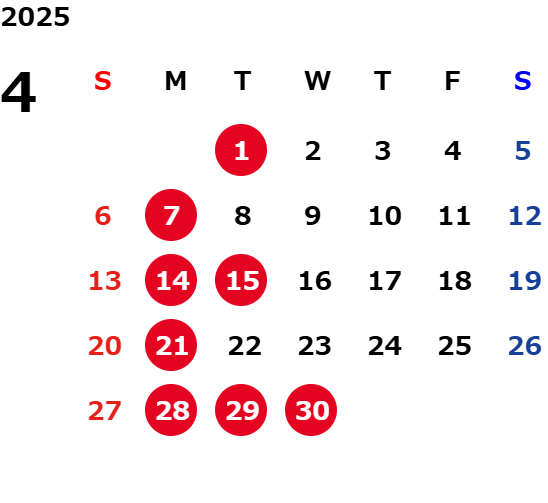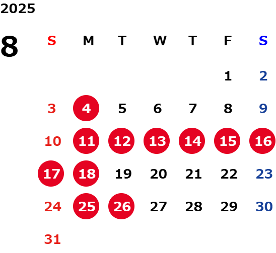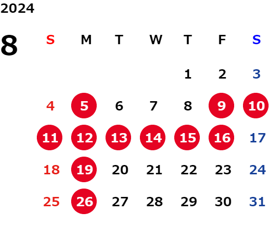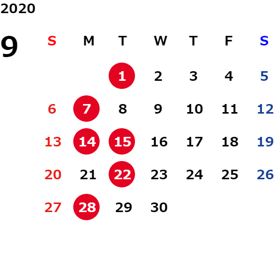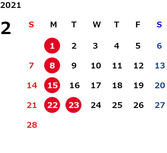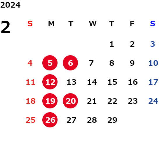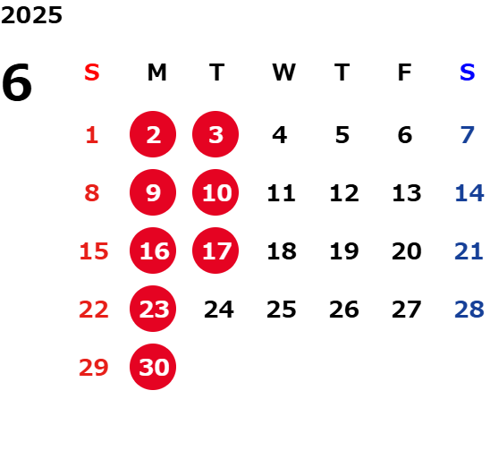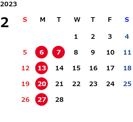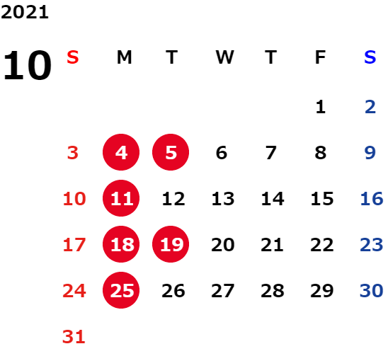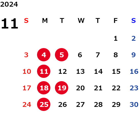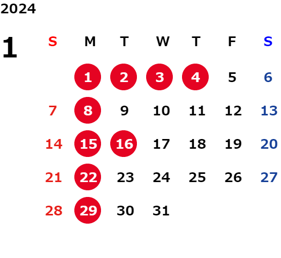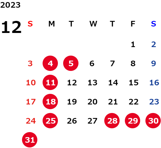 月曜日(一部火曜日) ※詳細は営業カレンダーをご参照ください。