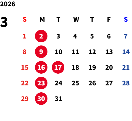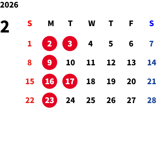 月曜日(一部火曜日) ※詳細は営業カレンダーをご参照ください。